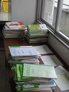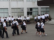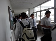 試験終了後には、各教科・科目の課題を提出するために、生徒は職員室前の指定場所を訪れます。写真は課題提出の生徒が詰めかけ廊下が混雑している様子です。生徒たちは部活に勉強に頑張っています。
