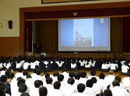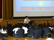 中間試験の終わったこの日、金沢少年鑑別所 金沢法務少年支援センター職員の方に来校いただき、「スマホ・ケータイ安全教室」を実施しました。