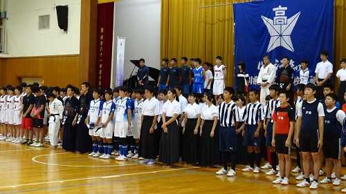 〇壮行式の様子です。大会に出場する生徒の人数に圧倒されます。頑張れ津幡高校!