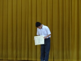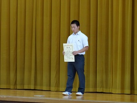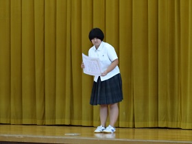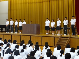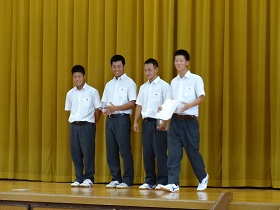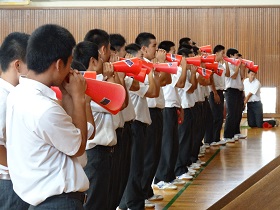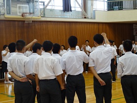 石倉校長の激励の後、運動部の3年生有志が仲間や後輩たちにエールを送って盛り上げてくれました。