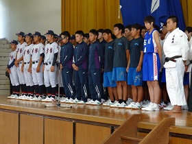 令和元年度の北信越高校野球(秋季大会)、前期新人大会、茨木ゆめ国体への壮行式が行われました。