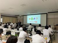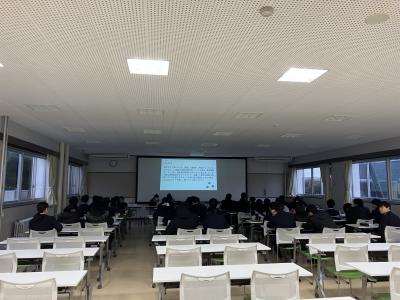 視聴覚室で3年生を対象に金融セミナーを開催しました。