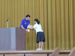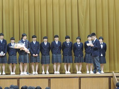 全校生徒の前で発表して、とても緊張したと思いますが、堂々とした態度とハキハキとした声で