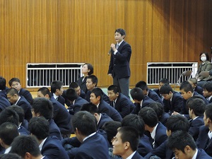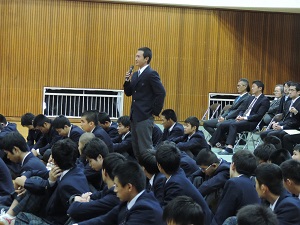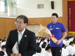 自分のしたいことはあきらめずにすること、挨拶や感謝の言葉を述べられる人は周りから助けられるということ、学校の先生たちとかかわりを持つことなど、将来を考える上で大切な内容を自身の体験談などを踏まえ数多くお話してくださいました。