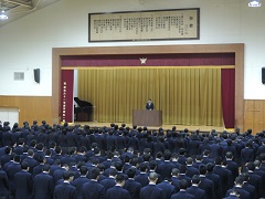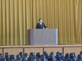 1月7日(月)より3学期が始まりました。本日は始業式、実力テスト等が行われました。始業式の後は、女子バスケットボール部ウインターカップ第4位の報告会が行われました。女子バスケットボール部の大健闘を全校生徒で称えました。