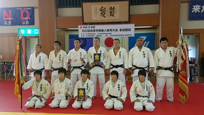 柔道部が団体戦で男女アベック優勝の栄冠を勝ち取りました。