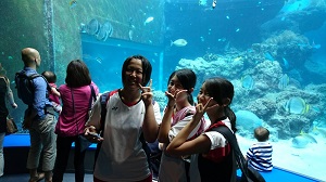 その後、沖縄のもっとも代表的な観光スポット美ら海水族館を見学しました。