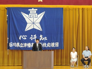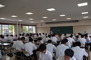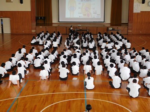 時節柄、体育館は蒸し暑く、講話を聞くのはたいへんでしたが、