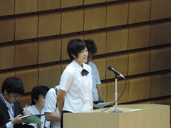 また、県全体の生徒代表として本校31Hの小谷麻衣子(女子柔道部)が挨拶しました。