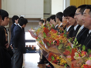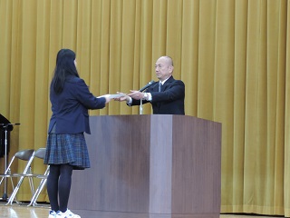 1ヶ年皆勤賞の表彰式、終業式、離任式、退官式が行われました。