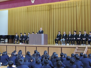 生徒に向けて思いを熱く話す先生方。津幡高校が本当に好きで熱心にご指導いただきました。ありがとうございました。