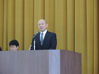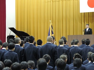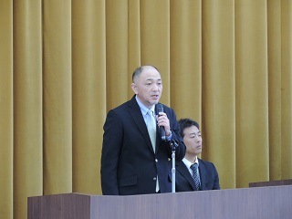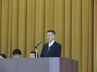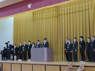 新任式では山下新校長が、目標や夢をもち”つよい津幡”の実現に向け、頑張ってほしいと挨拶しました。