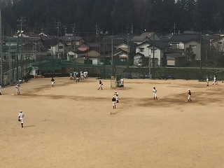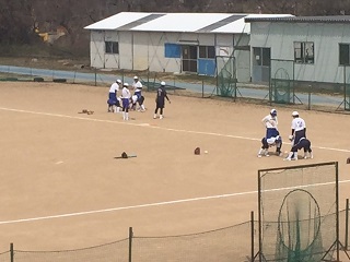 29日の昼下がり、春の陽射しを浴びて、野球部とソフト部が練習をしています。共に平成28年度の大会で躍進が期待できる部です。
