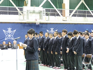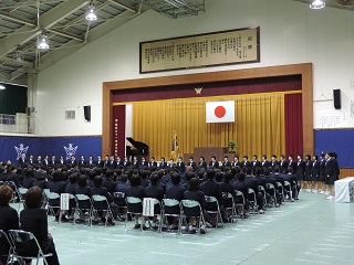 スポーツ健康科学科80名、総合学科105名の皆さんが入学しました。これから、学業に部活動に全力で頑張ってもらいたいと思います。入学式後は、スポーツ健康科学科女子生徒による校歌披露が行われました。