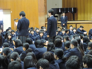 11日(月)は午前中が実力試験があり、午後からは対面式と新任の先生方の紹介がありました。