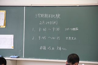 平成27年度最後の定期試験である期末試験が始まりました。1日まで続きます。