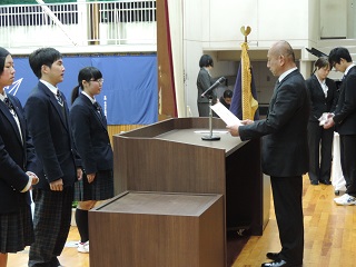 入会の挨拶を35Hの田尻君、記念品贈呈を35Hの宮崎さんが代表として行いました。