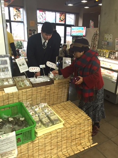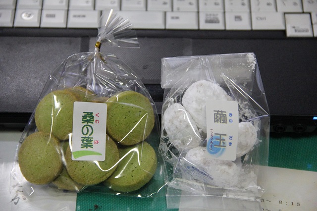16日 津幡町にある倶利伽羅塾で園芸部の生徒が津幡高校で開発した、桑の葉、繭玉を使ったクッキーを販売しました。さっそく興味を示して買っていっていただけるお客様もおり、出だしは好調です。