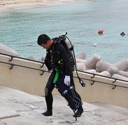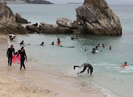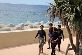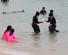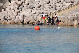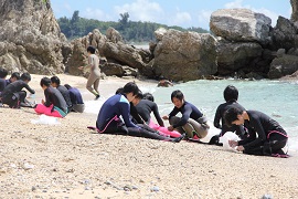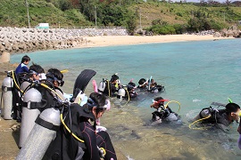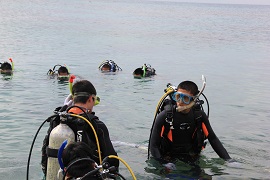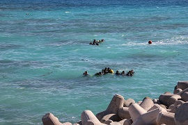 すぐに実習の準備に入り、真っ先に海に入っていきます。