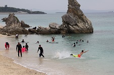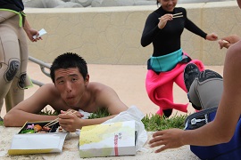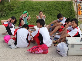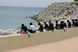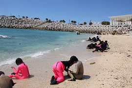 でも大半の生徒は、食事の時間も惜しんで海に飛び込んだり、貝やサンゴの破片を集めています。