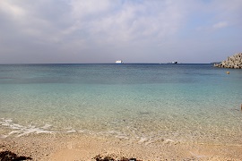 いよいよ最後のレッスンスタートです。海には誰もいないように見えますが、みんな潜っています。5メートルほど潜り、30分ほど浮いてきませんでした。