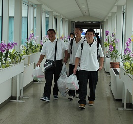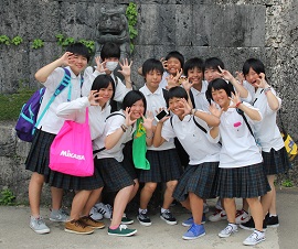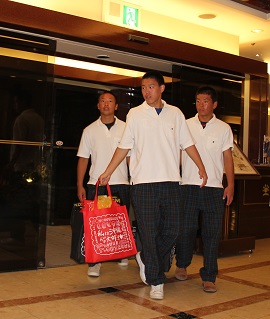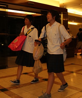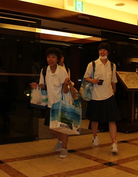 国際通りで2時間の自由時間があり、お土産を抱えて生徒が時間に間に合うように次々にホテルに帰ってきます。