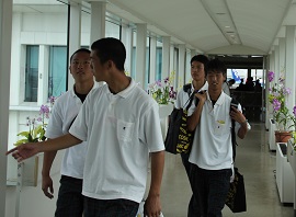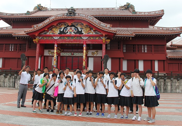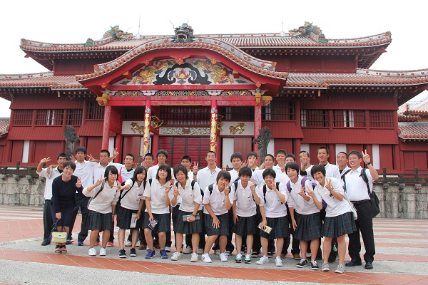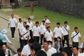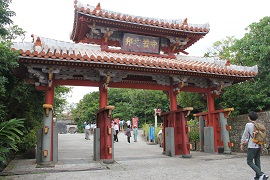 那覇のホテルを8時15分出発。沖縄に来て初めてバスガイドさんがつきました。観光らしいものは守礼の門だけです。 朝からテンションをあげてスポ科に対抗しようとするガイドさんの説明を聞きながら、30分ほどで守礼の門に到着です。