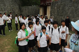 ガイドさんの説明を聞いて立っている場所の地下に、旧日本軍の本部地下壕がほられていたようです。遺跡の近くには本部を作らないという米軍との約束を破り、遺跡のそばに本部を作ったため、米軍から遺跡も攻撃を受け、首里城はかなり破壊されたとガイドさんは説明してくれました。