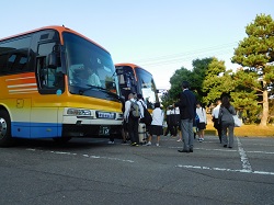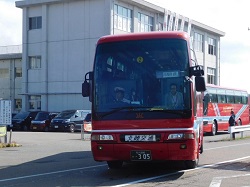 まずはバスで空港へ          発車・・・わくわくです
