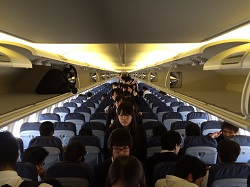 ドキドキ初?フライト           きれいな機内、でも狭いぞ
