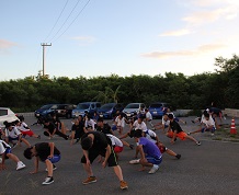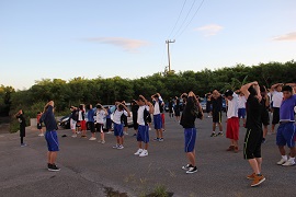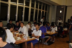 朝7時に津幡を出発し、沖縄の宿に午後6時30分に無事到着しました。長い旅でしたが、生徒たちは元気いっぱいです。