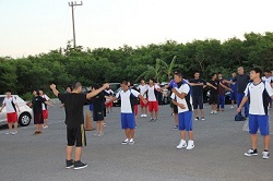 朝6時30分、体操から始まります。