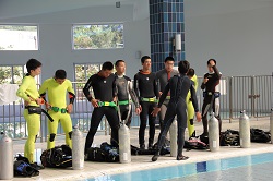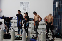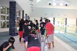今日はプールでしっかり基礎を学び、明日は海に潜ります。