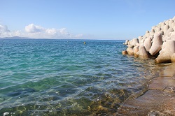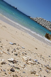 浜辺にはサンゴのかけら、貝殻がぎっしり。  ごみはほとんどありません。