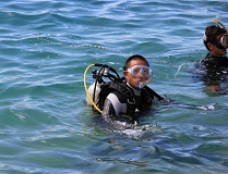 いよいよ透明度の高い沖縄の海に潜ります。最初はボンベなしです。