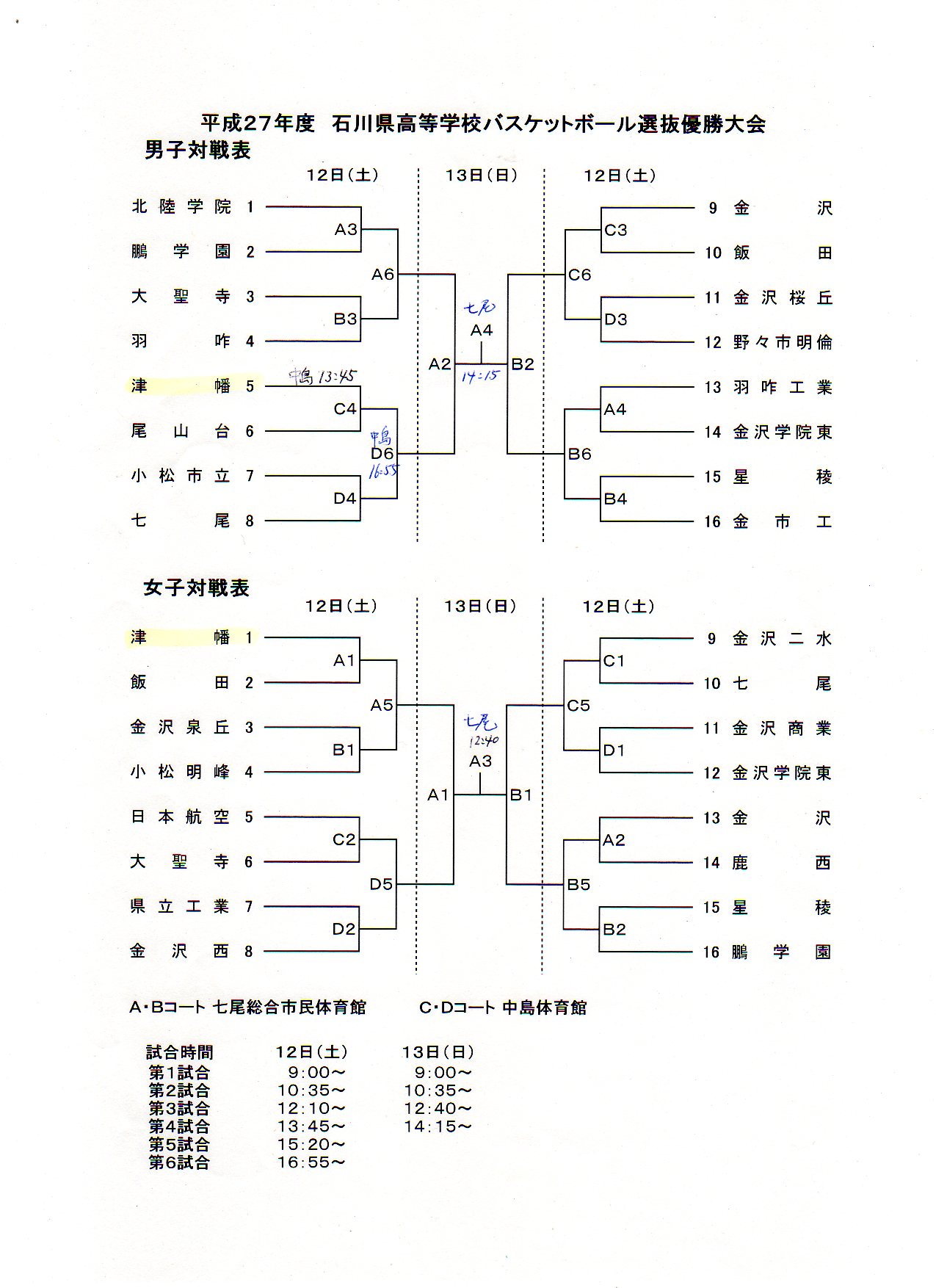 平成27年度 石川県高等学校バスケットボール選抜優勝大会(ウインターカップ)