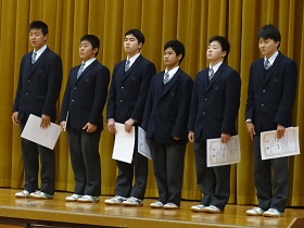 卒業式に先駆けて、高校生活において、部活や勉強等に成果のあった生徒たちに表彰状及び副賞が贈られました。
