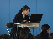1年総合学科の生徒は「産業社会と人間」の授業で、将来の自分について探求してきました。その集大成として、3クラスの代表15名が1年生全体の前で発表しました。