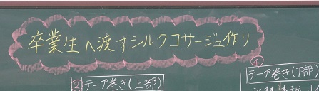 令和元年度の卒業式が3月3日(火)に行われます。本校では、卒業する3年生に下級生がシルク(まゆ)でコサージュを作り、プレゼンしています。