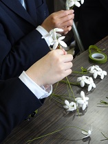 今日は総合学科の2年生がコサージュ作りに励みました。