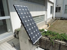 本校の生徒玄関付近の中庭に太陽光発電システムが設置されました。平成22年にエコプランでいただいたものですが、より身近に太陽光発電について知ってもらいたい、再生可能エネルギーについて学んでもらいたい、という思いから設置場所を変え、多くの生徒の目に触れる中庭に移動しました。