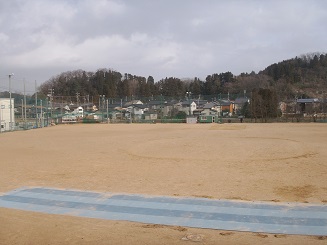 2階の窓から見えるグラウンドにも柔らかい陽射しが差し込み