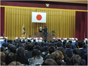 式は、同窓会会長の向 正則さんの歓迎の言葉にはじまり、同窓会入会のあいさつは杉本聖心さん(33H)、