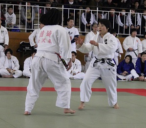 しかし勝負はここまででした。本校の副将は見事に鶴来高校の大将に一本勝ちをおさめ、