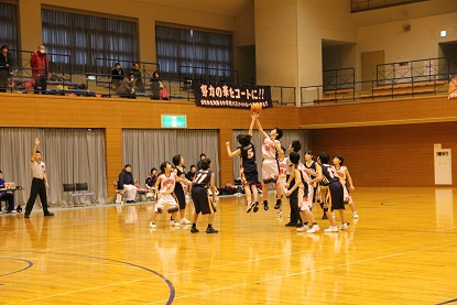 中学校男女バスケット部を招待し、対抗試合を津幡町総合体育館で行いました。
