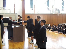 前期新人大会及び国民体育大会に向けての壮行式を行いました。