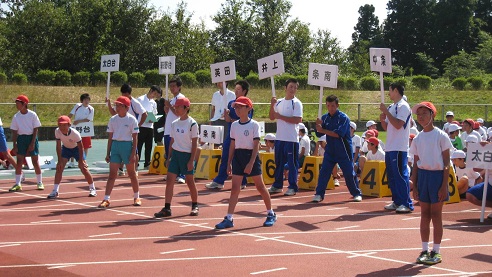 児童達は100M競争や学校対抗リレーに、「きびきび」と行動し、一生懸命に取り組んでいました。
