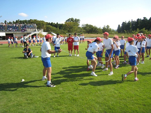 津幡町にある小学校の6年生全員が津幡運動公園陸上競技場に集まり、第2回津幡町小学校体育大会が開催されました。