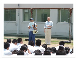 非行防止講話では、高校生の深夜徘徊から、最近話題となっている脱法ドラッグのことを実話を踏まえて、幅広い犯罪行為やそれに対する処罰の内容に対して話していただきました。夏休み中、くれぐれも事件・事故に巻き込まれないよう注意喚起し、講話を締めくくられました。