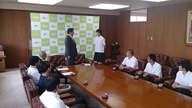 県大会で勝ち取り全国高校総体への切符を手にした部の代表が、津幡町役場へ表敬訪問し、矢田津幡町長から直接、力強い激励の言葉をいただきました。
